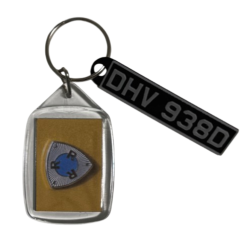 This Reliant Supervan III key fob comes with the Trotter's registration number DHV 938D in silver 3D letters on a black base.